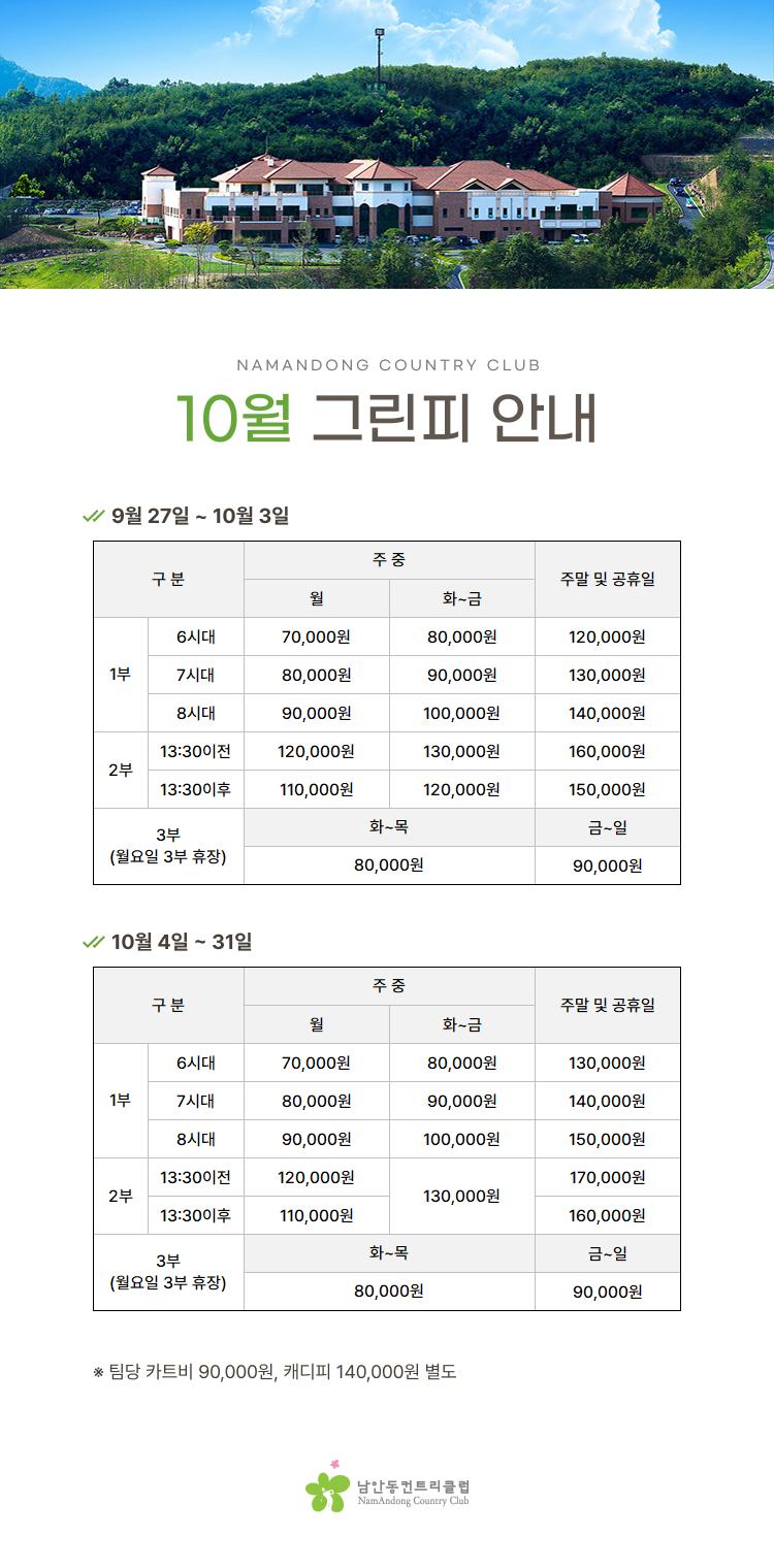 9월 27일 ~ 10월 31일 까지 그린피 안내